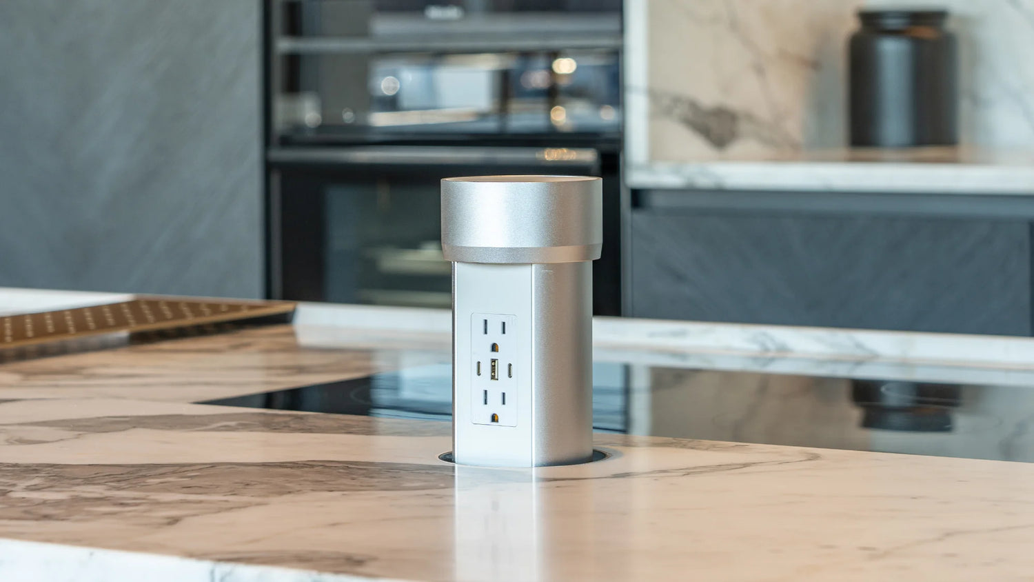 These Pop Up outlets are the best. They are so sleek and we love that the countertop can be flush. We build a lot in Idaho and most of our clients' countertops flow into their windows with no wall space but code now requires outlets every so many feet in the countertop so this allows to not distract from the natural beauty of the stone we use but still allow our clients to have outlets.