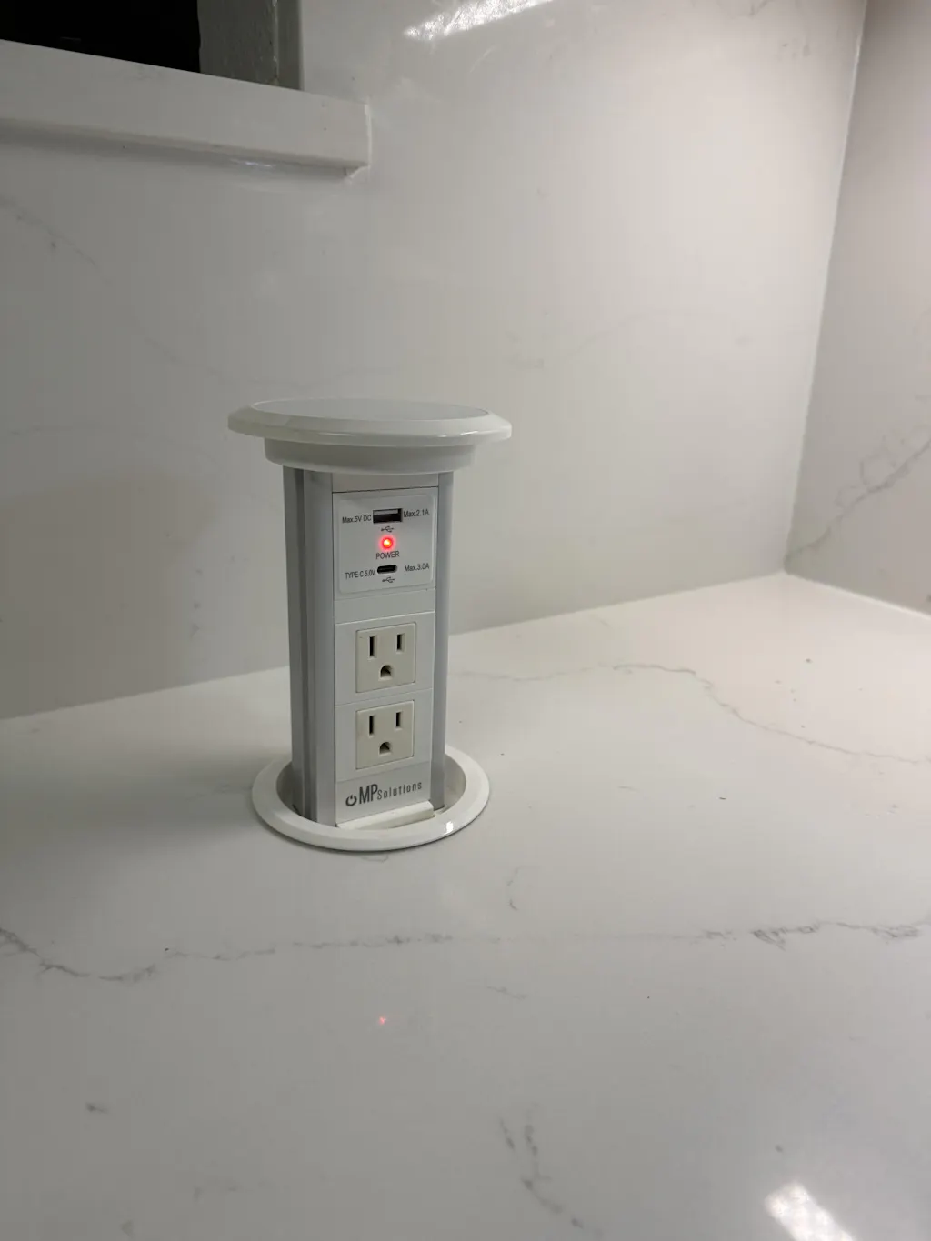 I recently installed the Modern Power Solutions motorized pop-up outlet, and overall, it’s been a great upgrade to my space. The design is sleek and modern, blending seamlessly into my countertop when not in use. With just a light press, the unit smoothly rises, revealing multiple outlets and USB ports—super convenient for charging devices or plugging in appliances without cluttering the area.
